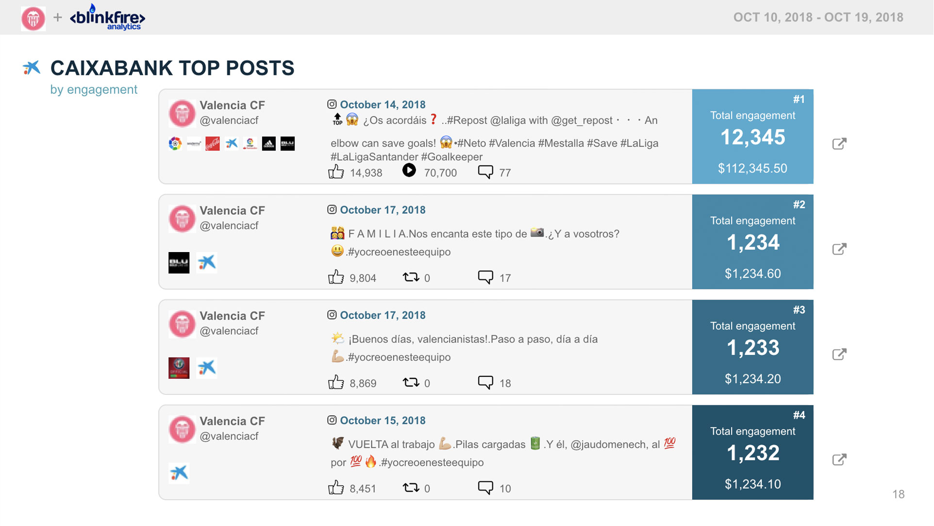 Arm your sponsorship team with reports about the performance of each sponsor from your social media channels and social streams. Demonstrate the reach of digital properties and monetize the value earned in social media.